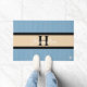 HAMbyWhiteGlove aka HAMbWG é um prazer design e oferecer-lhe tapetes de porta personalizados. Este pode ser qualquer fundo colorido e o fundo é uma faixa fina de dois tons. As fontes também podem ser alteradas, tamanho, estilo e cor. Há uma banda bege preta e de trigo atrás do monograma. Basta escolher a opção personalizar para adicionar seus detalhes e, em seguida, personalizar para alterar as cores. Mostrado em azul.