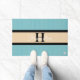 HAMbyWhiteGlove aka HAMbWG é um prazer design e oferecer-lhe tapetes de porta personalizados. Este pode ser qualquer fundo colorido e o fundo é uma faixa fina de dois tons. As fontes também podem ser alteradas, tamanho, estilo e cor. Há uma banda bege preta e de trigo atrás do monograma. Basta escolher a opção personalizar para adicionar seus detalhes e, em seguida, personalizar para alterar as cores. Mostrado em Aqua.