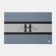 HAMbyWhiteGlove aka HAMbWG é um prazer design e oferecer-lhe tapetes de porta personalizados. Este pode ser qualquer fundo colorido e o fundo é uma faixa fina de dois tons. As fontes também podem ser alteradas, tamanho, estilo e cor. Há uma faixa negra e cinza atrás do monograma. Basta escolher a opção personalizar para adicionar seus detalhes e, em seguida, personalizar para alterar as cores. Mostrado em Azul Prateado.