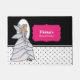 Projetado com base na minha ilustração de moda de uma bela senhora loira que veste um elegante vestido de pétala elegante de cinza branca. O design tem Bolinhas negras e brancas em segundo plano - uma porta chic e moderna, perfeita para a sua casa ou negócio. Personalizável com seu próprio texto para um design personalizado.