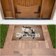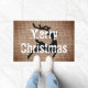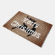 Imagem personalizada e entrada rústica de renas de fazenda de texto. Esta porta de Natal é uma pá de fundo, decorada com uma bela rena preta e removível. O texto é branco em caracteres modernos em grande escala.