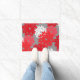 Doormat em uma tomada moderna em um impressão floral japonês tradicional do quimono - flores estilizados no vermelho chinês profundo, no vermelho coral, e no branco em umas cinzas escuras da grafite/fundo cinzento