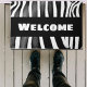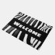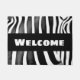 Impressão zebra com texto em negrito "Bem-vindo". Porta engraçada em preto e branco com a arte original de Alma Wad. Excelente em qualquer casa moderna onde os itens do estilo retrorreflector sejam apreciados.