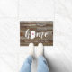 Mostre algum orgulho do estado de casa com este bonitinho tapete rústico de madeira em prancha apresentando "home" em letras brancas de escrita de caligrafia com um mapa da silhueta do estado de Indiana em pé para a letra "O". Um dentro cor-de-rosa para ilustração cardíaca no mapa do estado completa o design; você pode mudar a posição do coração para sua cidade natal abrindo a ferramenta design e arrastando a forma do coração para seu lugar favorito. Personalize com sua cidade natal, seu nome familiar e ano estabelecidos para criar um toque perfeito para sua porta dianteira, ou um presente memorável de inauguração de casa.