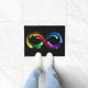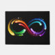 Symbol of infinity is artistically painted with fast moving, bright, luminous, rainbow colored comets with long flexible tails on black background. Rainbow infinity.