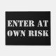 Porta-tapetes amigáveis? Não. Queremos porta-esteiras cínicas na nossa casa... A porta está disponível em uma escolha de cores e apresenta o slogan "Enter at own risk", da linha 'Cynica Doormats' de Mindgoop