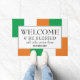 IRISH FLAG Welcome Be Benessed Ireland Doormat with CUSTOMIZABLE TEXT (BEM-VINDO BEM-VINDO BEM-VINDO À Irlanda) com TEXTO PERSONALIZÁVEL. Na moda, patriota WELCOME Doormat com a redação WELCOME & BE BLESSED ALL WHITER ENTER AQUI mais o nome da amostra. O pano de fundo é a bandeira da REPÚBLICA DA IRLANDA num padrão ondulado grande e deslocado. Todo o texto é PERSONALIZÁVEL para que você possa alterar o texto de acordo com suas necessidades, por exemplo, adicionar nome da família, lema da família, citação inspiradora. Esta porta irlandesa de bandeira faria um excelente adicional à sua decoração de varanda para comemorações de Dia de São Patrício.