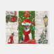 Jack Russell Dog Natal sentado do lado de fora de casa decorada com coroa de Natal, árvore de Natal é uma ideia perfeita de presente de Natal para amantes de cachorros.