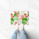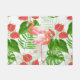 Design de padrão aquoso com flores e aves flamingos, monstera e palmeiras.