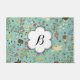 Jardim lunático, um bonito, colorido, divertimento, design lunático do creme, marrom escuro, coral, azul, e flores e pássaros do verde em um fundo bonito do azul do aqua. Este divertimento, esteira de porta colorida, lunática caracteriza uma bandeira da forma da flor branca que você possa facilmente personalizar com sua inicial do monograma!