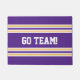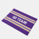 Esta esteira de porta roxa corajosa, caracterizando listras coloridas ouro, adiciona um pop da cor. Personalize com sua nome ou mensagem.