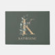 Florial do monograma da letra K. A letra K na textura marrom-ouro acentua-se com folhas e bagas compostas de cor aquosa verde e pó de ouro. Personalizado com o nome na fonte correspondente. Colocado em verde mineral escuro.