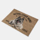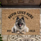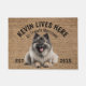 Keeshond Personalizado Dog amante bem-vindo. Este tapete de boas-vindas pode ser personalizado com o nome do seu cão, o slogan também pode ser mudado ou você pode usar uma fotografia do seu próprio cão (certifique-se de que é transparente). O texto diz: Kevin mora aqui... Todos os tratamentos são bem-vindos Edite o design para alterar a fonte, as cores e a cor de fundo. Ao substituir a imagem do seu cão, use uma imagem transparente. Faz um presente maravilhoso para uma festa de inauguração, feriados, amantes de cachorros e a maioria das vezes.