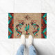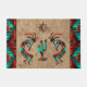 Este é um "Um dos tipos" do sudoeste de Kokopelli Doormat! Ele apresenta dois Kokopelli tocando flauta e dançando em volta de um cacto sob o sol em um fundo de bronzeado... cercado por uma borda sudoeste em Turquesa, Laranja e Negro! Esta é uma Design de Arte Original do Artista Kerry Miller.