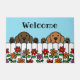 Labrador Duo te vendo a porta de boas-vindas para os fãs do Labrador! Labrador e Labrador Vermelho Fox estão te observando atrás do leito de flores e parecem que querem dizer algo para você! Cartoon Labrador Retriever Dog Whimsy e engraçado criado por Naomi Ochiai do Japão.