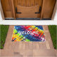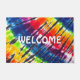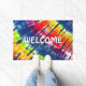 Fazem você amor laço-tintura? Comemore os anos 60 e o 70s no estilo com este doormat da laço-tintura do arco-íris! Foto de uma parte real da laço-tintura com o sol que brilha completamente para fazer as cores vibrantes.