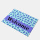 Bem-vindos visitantes à sua casa com esta na moda e sofisticada lavanda roxa roxa e turquesa, modelo de pele de leopardo-da-pétala. Este tapete de porta é personalizado com a palavra Bem-vindo que você pode mudar para outra palavra ou nome. Uma faixa roxa de lavanda periwinkle fornece uma área para personalização e um pop de cor. Aproveite esta design popular e contemporânea que irá adicionar um sotaque decorativo de casa de tendências. Esta design de leopardo está disponível em várias combinações de cores nesta loja.