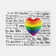 design LGBT-temático que caracteriza um coração do arco-íris cercado "eu te amo" por textos em línguas diferentes