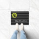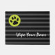 Cachorro Parecido limpe a porta das suas patas de Ricaso em cinzas e faixas pretas com círculos verdes brilhantes e uma pata impressa