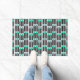 Esta porta tem uma design moderna do século médio, feita de cinco linhas pretas e dois retângulos de turquesa repetidos na design.