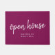 Uma propriedade de casa aberta na moda que lista modelo de porta com um tipo de letra de script manual informal e casual em um fundo cor-de-rosa na moda fuschia. Adicione facilmente seu nome e detalhes de contato opcionais (telefone, email, mídia social e muito mais). O acessório perfeito para qualquer corretor ou agência de listagem de propriedades!