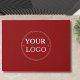Personalize este tapete de porta na moda com o logotipo profissional da sua empresa. Design apresenta um logotipo simples sobre um fundo vermelho festivo. A tempo das férias. Aumente sua empresa e adicione esses itens modernos da marca de tendência aos seus produtos. Fácil de personalizar. Pegue o seu hoje!