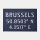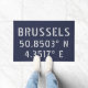 Coordenadas de latitude e longitude de Bruxelas e do mapa das cinzas industriais urbanas em fundo azul escuro