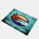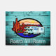 O presente de acampamento de madeira da decoração do olhar rv da cerceta rústica para rvers, casais aposentados, e cor de turquesa dos campistas, doormat de madeira afligido do olhar lê "vagueia o doce vagueia" na parte inferior, em uma chalaça no provérbio clássico, 'na casa doce Home", em olhar escrito à mão e carimbado, as letras brancas. É centrado um motorhome rv do vintage que senta-se no deserto durante um por do sol. Presente da aposentadoria do divertimento para a mamã e o pai que como a viajar. Seja direito em casa na frente de um rv.