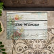 Adicione seu nome familiar ou outro texto a conselhos de madeira rústicos decorados com pássaros pintados circulando uma pássaro. A pintura é adaptada a partir de um postal de Páscoa de 1920, cortesia da Biblioteca Pública de Nova York.