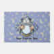 O velho feiticeiro com capa azul e bola mágica de cristal. Use a foto facial para personalizar. Texto personalizado.
