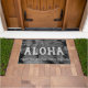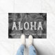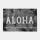 Cinza. A mensagem de Aloha dá as boas-vindas aos seus visitantes no seu paraíso tropical. A podridão das palmeiras nos lembra as praias tropicais do Havaí. Este têxtil usa o vento que tocou grandes folhas de palma em uma combinação de cor tonal. Este design vem de várias maneiras coloridas. Você pode personalizar a mensagem.