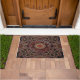 Bem-vindos convidados com o charme vibrante do Semicírculo Étnico Persa Sunniest Mandala Doormat. Esta porta distintiva apresenta uma brilhante arte circular persa mandala abraçada por um quadro de semicírculo étnico vermelho e amarelo. Criado com uma sublimação de alta qualidade impressa em um tapete de 24" w x 36" l, resiste a esmaecer e oferece uma cor rica em cheios que não desaparecerá. O velo liso de 1/8" da porta, com borda branca, adiciona um toque de elegância, enquanto que o suporte resistente à ação do látex garante uma aderência sem escorregamento