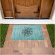 Imagem de mandala linear preta com fundo de madeira azul-curtida faz deste um tapete acolhedor para quase todos