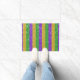 Bem-vindos ao mundo à sua casa e à sua festa de carnaval com este maravilhoso tapete de porta Mardi Gras! As cores impressas com brilho brilhante de ouro roxo, verde e amarelo trazem charme à sua porta frontal enquanto mantêm os microplásticos fora do ambiente!