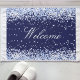 Um fundo azul marinho colorido. Decorado com confete azul claro. Com o texto: Bem-vindo escrito com um moderno script de estilo escrito à mão.