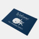 Bem-vindos convidados para a sua casa de praia com este tapete de porta personalizado, com um fundo azul marinho, e dólar branco de areia e peixe-estrela. *Se você precisa de ajustes de design ou gostaria de mais produtos com este design ou outras maneiras, entre em contato comigo através do Zazzle.
