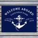 Bem-vindo a bordo da sua nave com esta porta Marinho Azul de Boat Náutica personalizada. Projetado com um clássico fundo azul marinho e uma proeminente âncora de barco, esta porta é a adição perfeita ao seu lago ou casa costeira, ou barco. Esta porta pode ser personalizada com o nome do barco, fazer-a como um complemento personalizado à sua decoração. É também o presente perfeito para marinheiros e barqueiros, especialmente durante a temporada de verão. Imagine o olhar em seus rostos quando eles veem o nome do barco orgulhosamente mostrado neste tapete de alta qualidade. A porta azul Marinho de ancorar design do nome de bordo do navio de boas-vindas náutico não só é funcional como também na moda, com o seu eterno náutico. Irá adicionar um toque de charme costeiro a qualquer porta. Então faça uma declaração com este tapete de barco personalizado e seja bem-vindo a bordo dos seus hóspedes em estilo!