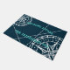 Marinho Náutico Blue Welcome Aboard Compass Rosa mat, apresentando um design moderno com rosas de bússola e linhas de navegação em branco sobre fundo azul marinho. Personalize o tapete do barco com o nome do seu barco. Esta design costeira de na moda também faz um presente de excelente para um dono de barco.