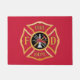 Este tapete de porta está decorado com a Cruz Maltesa do Bombeiro.