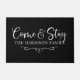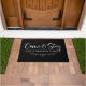 Um tapete moderno de caligrafia que realmente nos faz sentir bem-vindos. Um presente de excelente para recém-casados ou novos donos de casa, nosso costume vem e fica à porta em cinzas elegantes e duráveis "Venha e Fique" em um moderno e elegante roteiro de caligrafia manuscrito. Personalize com seu nome familiar em letras brancas clássicas. Projetado para você pelo Blackberry Boulevard.