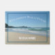 Bem-vindos convidados para sua casa com vibrações na praia. Esta design apresenta uma fotografia de um tipo das ondas azuis tranquilas e areia macia das Rochas do Selo, ao largo da costa de Sydney, Austrália. O texto branco moderno é personalizável para que você possa adicionar seu próprio nome de família. Faça da sua casa uma casa com este tapete de porta incrível.