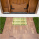 Um tapete de porta decorada com corações roxos e realçado em amarelo e verde. O fundo verde claro pode ser mudado para qualquer cor para corresponder à sua decoração.