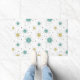 Este fabuloso tapete de porta moderno de meio século mostra estrelas de Franciscan em azul e amarelo. Faça uma declaração na sua porta da frente!