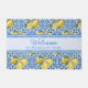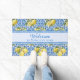 Beautiful classic Mediterranean style pattern with watercolor lemons and ornate decorative blue and white tiles. Personalize the welcome mat with your name.