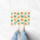 Um padrão retrô inspirado pelo estilo de arte moderna de meio século, com raios solares abstrato em laranja e turquesa, e linhas pretas em negrito.