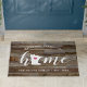 Mostre algum orgulho do estado de casa com esta fofinha porta de prancha de madeira rusticada apresentando "casa" em letras de escrita branca com um mapa da silhueta do estado de Minnesota em pé para a letra "O". Um dentro cor-de-rosa para ilustração cardíaca no mapa do estado completa o design; você pode mudar a posição do coração para sua cidade natal abrindo a ferramenta design e arrastando a forma do coração para seu lugar favorito. Personalize com sua cidade natal, seu nome familiar e ano estabelecidos para criar um toque perfeito para sua porta dianteira, ou um presente memorável de inauguração de casa.