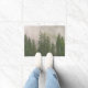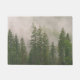 Esta design apresenta fotografia paisagística de um fundo de árvores de floresta nebulosa.
