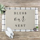 Bem-vindos convidados em estilo com esta moderna porta de uma fazenda apresentando o charmoso design de texto "Bless Our Nest" em um fundo bege com textura falso em burlap. Personalize com qualquer texto, fontes e cores para torná-lo exclusivamente seu. Perfeito para entradas, porches, ou como um presente pensativo para o aquecimento doméstico, esta porta combina encanto rústico com um toque moderno.