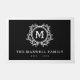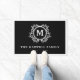 Casaco de boas-vindas monogramas, preto e branco, com uma bela videira e um monograma decorado em folha, acima do seu nome familiar e do ano em que a sua família foi criada.