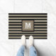 Monograma, Rustic Black White Brown Striped Chic Front Door Outdoor Doormat. Clique em personalizar este modelo para personalizá-lo com seu próprio Monograma Inicial rápida e facilmente. A porta é uma borracha não escorregadia que não racha nem agarrará, este tapete resiste a desaparecer, molde e mofo e pode ser facilmente limpo com uma mangueira. Navios no mundo todo rápido. Garantia de 30 Dias. Monograma, castanho branco-branco-torrado com ranho. Criado pelo artista original RjFxx *Todos os direitos reservados. #MonogramaPortaExterior #ModernPorta #ZazzleMade
